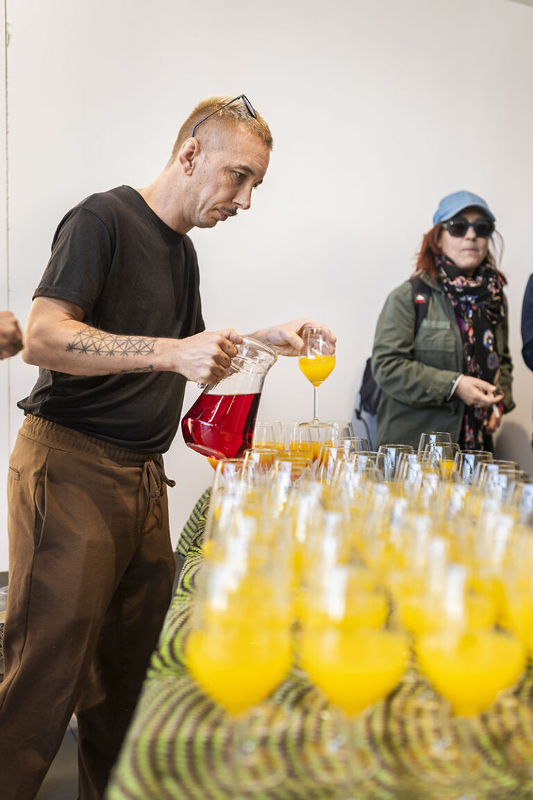 Moment convivial et collectif sur la terrasse de la Fabrique Pola, face au coucher de soleil bordelais et rencontre avec Guillaume Aubry, architecte et artiste.