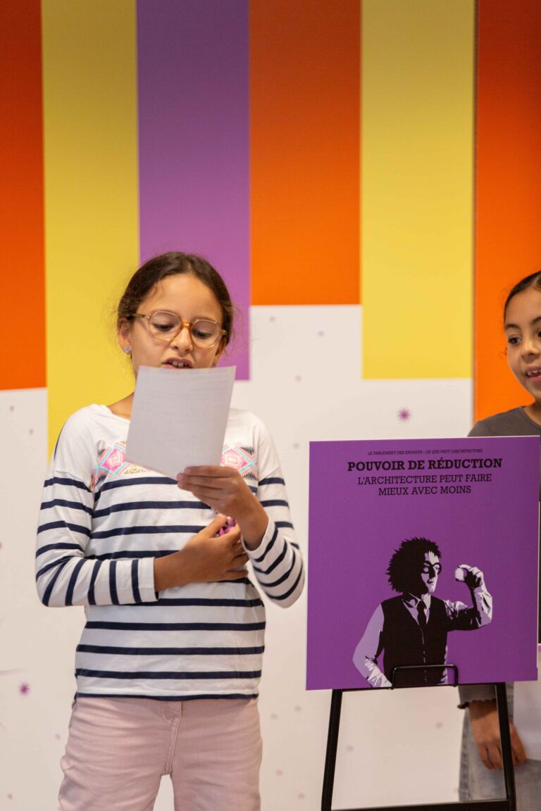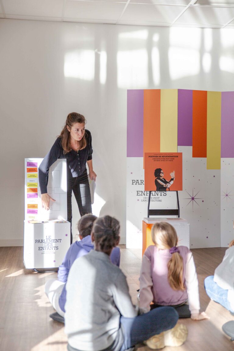 À destination des groupes scolaires et imaginés comme des mini-parlements, ces ateliers pédagogiques sont l’occasion pour les enfants de découvrir l’architecture et de débattre autour de ses grands enjeux contemporains.