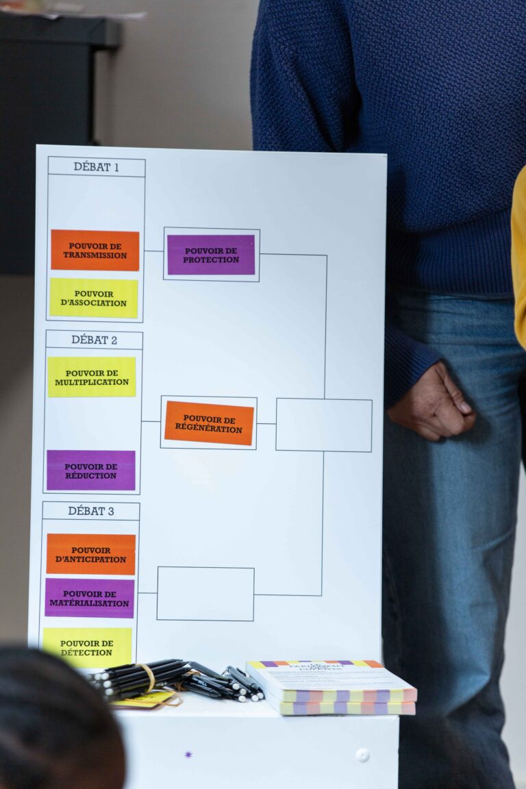 Au sein d’un dispositif scénographique spécifique s’inspirant des configurations et codes habituels des lieux de débats (pupitres, micros, temps de paroles, audience circulaire), ces ateliers-débats, conçus par +Mieux Créations (Fanny Tassel), proposent un contenu pédagogique adapté au jeune public et sont également l’occasion de sensibiliser les enfants à l’importance de l’écoute, de l’échange, du débat, d’apprendre à défendre un point de vue et de s’engager dans une démarche citoyenne.