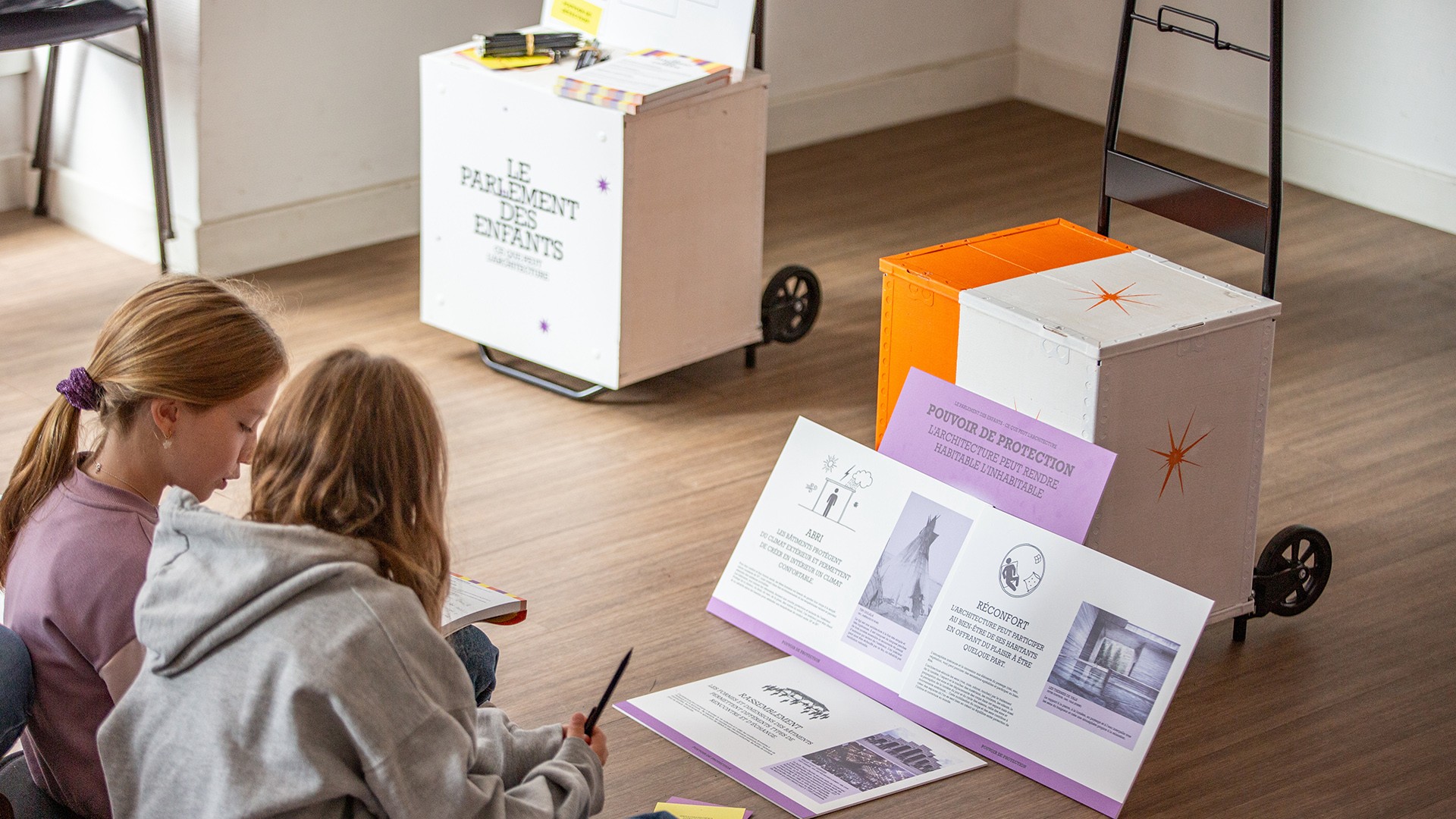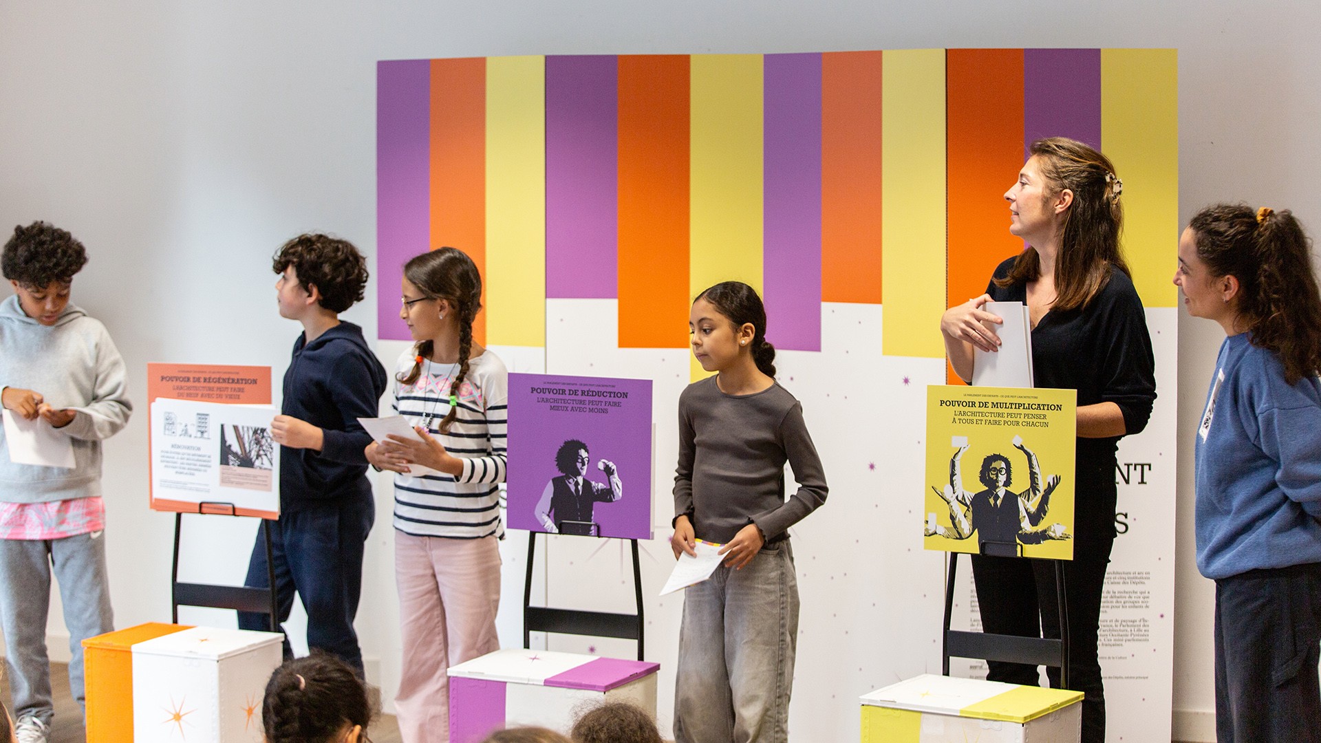 À destination des groupes scolaires et imaginés comme des mini-parlements, ces ateliers pédagogiques sont l’occasion pour les enfants de découvrir l’architecture et de débattre autour de ses grands enjeux contemporains.