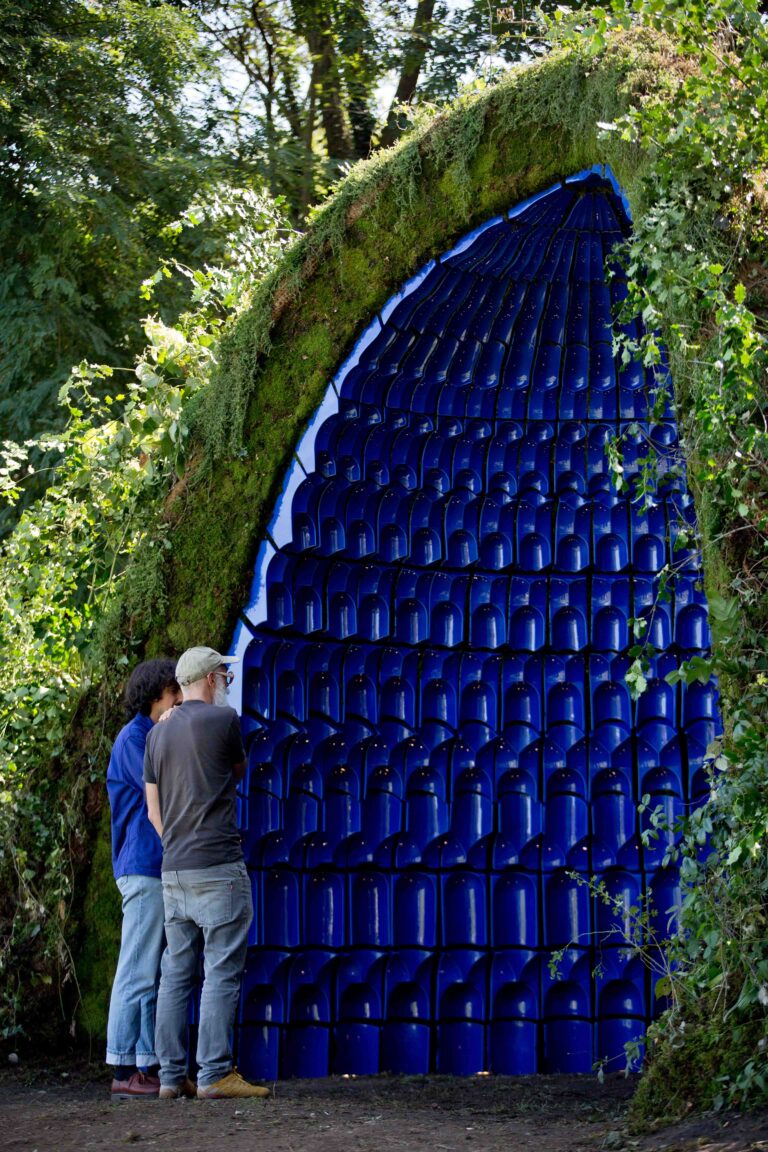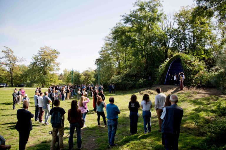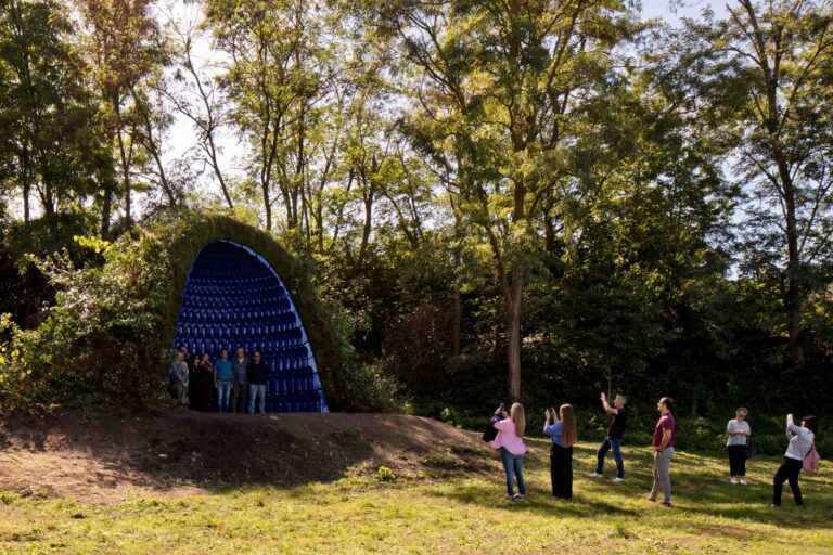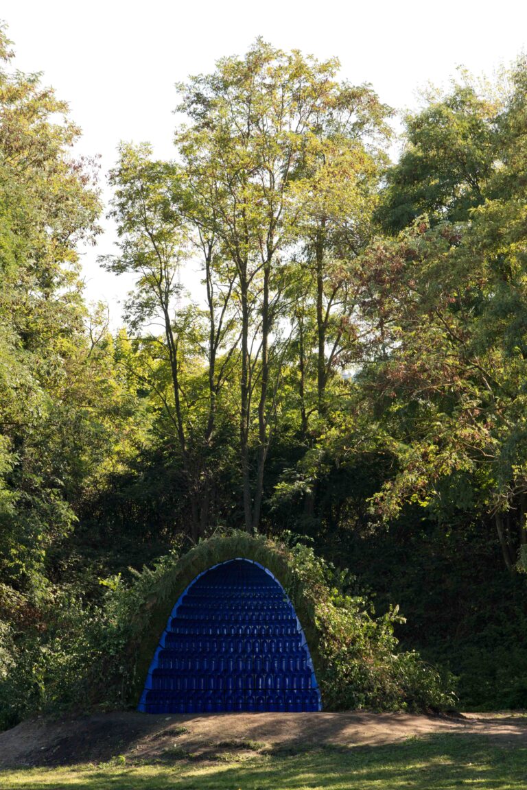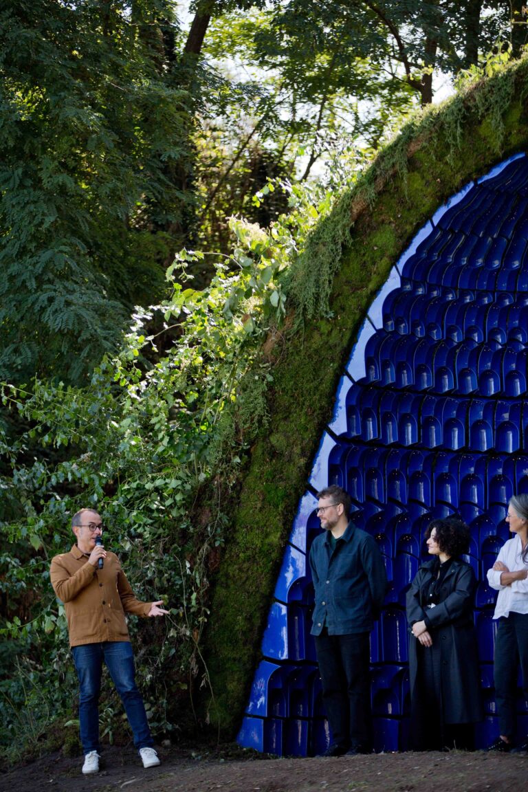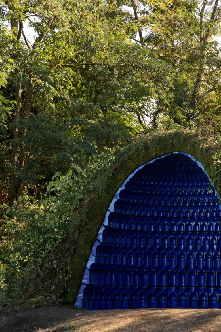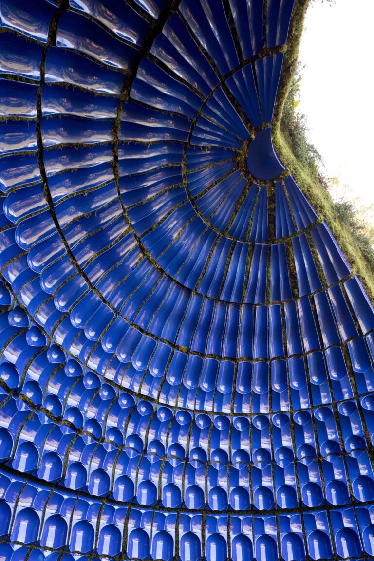 Après la réalisation d’un premier prototype partiel au CIVA (Bruxelles), le pavillon est accueilli à Saint-Etienne dans le parc Explora où il devient un nid à deux faces : une face ludique à destination d’enfants, et une face à destination d’oiseaux, insectes et rongeurs. Les aspérités intégrales au motif deviennent autant d’habitats pour le vivant, à l’image des nids d’hirondelles intégrés aux façades de lieux de cultes ottomans.