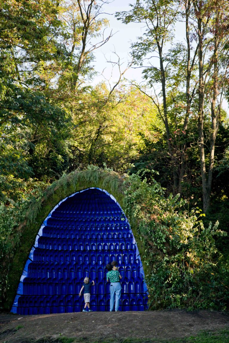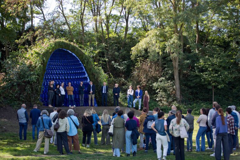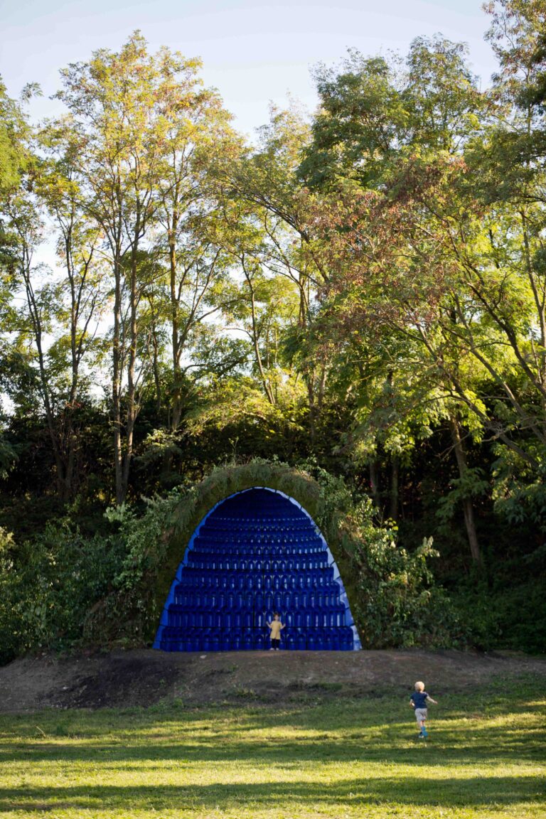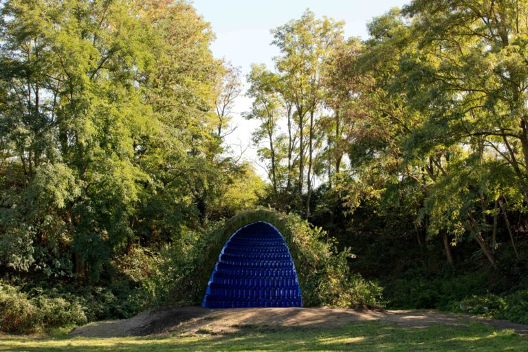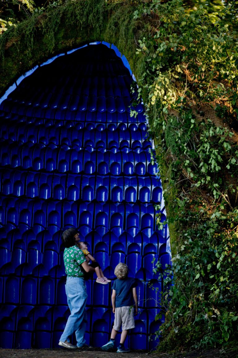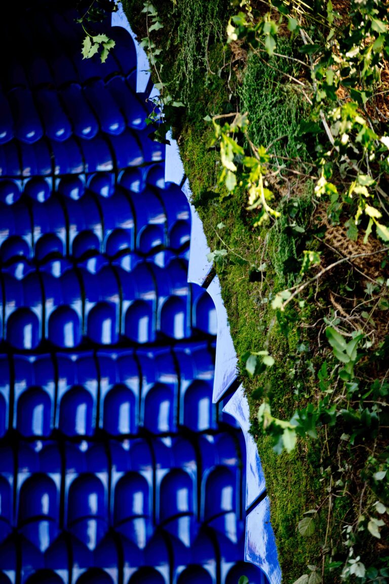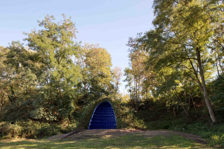 Après la réalisation d’un premier prototype partiel au CIVA (Bruxelles), le pavillon est accueilli à Saint-Etienne dans le parc Explora où il devient un nid à deux faces : une face ludique à destination d’enfants, et une face à destination d’oiseaux, insectes et rongeurs. Les aspérités intégrales au motif deviennent autant d’habitats pour le vivant, à l’image des nids d’hirondelles intégrés aux façades de lieux de cultes ottomans.