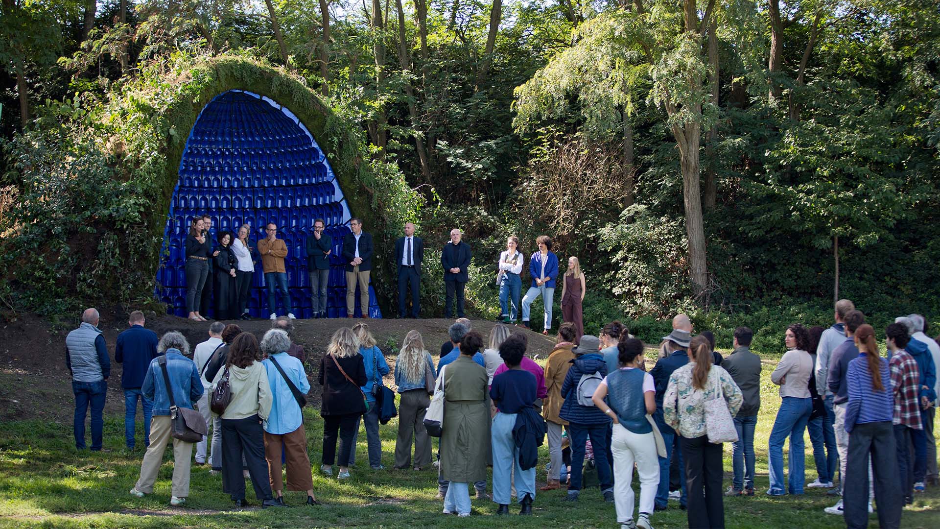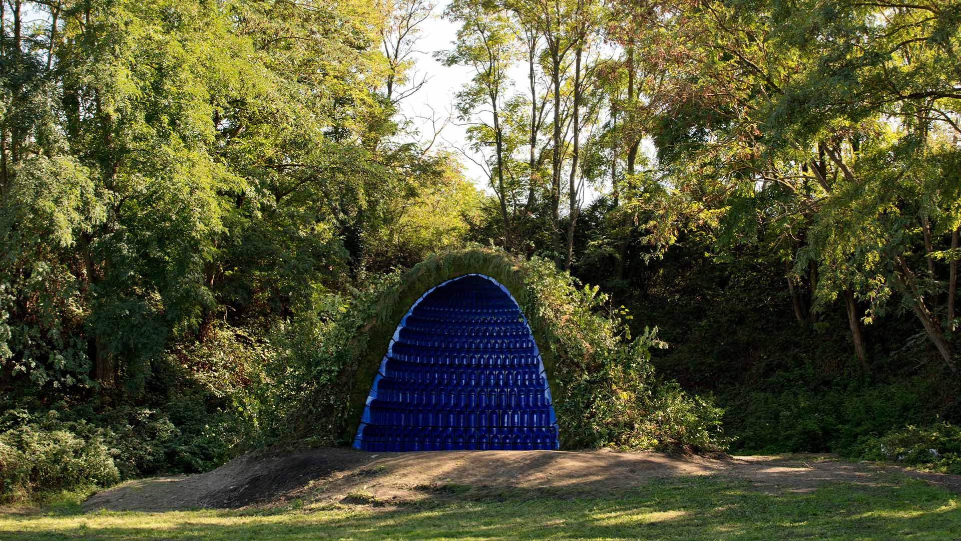 Après la réalisation d’un premier prototype partiel au CIVA (Bruxelles), le pavillon est accueilli à Saint-Etienne dans le parc Explora où il devient un nid à deux faces : une face ludique à destination d’enfants, et une face à destination d’oiseaux, insectes et rongeurs. Les aspérités intégrales au motif deviennent autant d’habitats pour le vivant, à l’image des nids d’hirondelles intégrés aux façades de lieux de cultes ottomans.